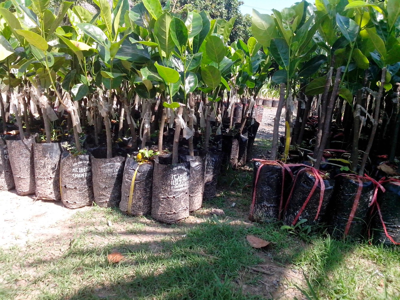 Khi thời tiết bắt đầu có mưa và mưa đã ẩm đất , chọn những ngày râm mát hoặc có mưa nhỏ để trồng cây. Trước khi đặt cây vào hố phải đập tơi đất trong hố , đảo đều phân bón lót và lấp đất thêm cho đầy hố. Cuốc một lỗ sâu khoảng 10 – 15 cm giữa hố , dùng dao rạch và tháo bỏ bầu trước khi trồng. Đặt cây thẳng đứng vào hố sao cho mặt trên của bầu đất thấp hơn miệng hố 1 – 2 cm , dùng tay lấp đất bột và ấn chặt chung quanh bầu. Dùng cuốc vun đất chung quanh đầy vào gốc cây.